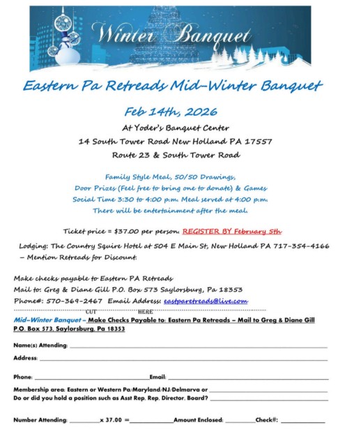 Mid-Winter Banquet Saturday, February 14 at Yoder’s Banquet Center $37.00 per person money due by February 5th See flyer for more details